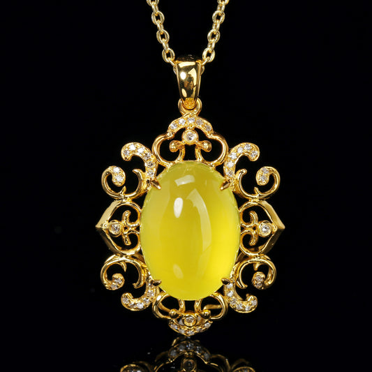 Golden Radiance · 18K Vintage-Style Prehnite Pendant