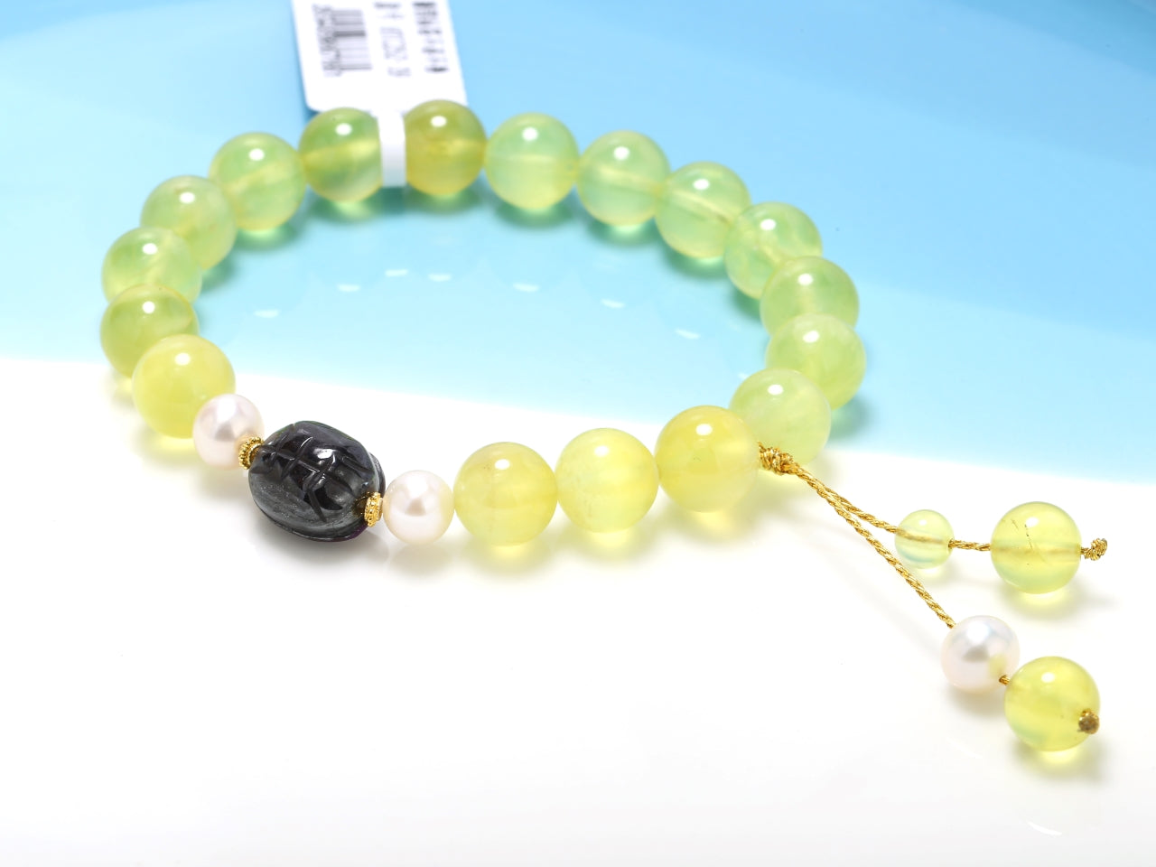 Longevity Shell · Golden Prehnite & Carved Sugilite Bracelet