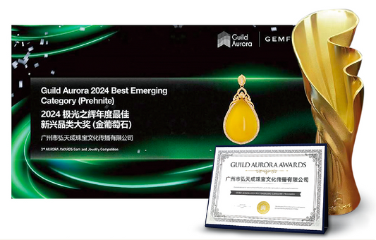 In 2024, our unwavering pursuit of excellence in Australian golden prehnite earned international acclaim. Our Chinese partner, Guangzhou Hongtiancheng Jewelry Culture Communication Co., Ltd., was awarded the Best Emerging Category Prize (Golden Prehnite) at the third Aurora Brilliance Jewelry Awards. This accolade not only celebrates the rare beauty of golden prehnite but also stands as the ultimate testament to our commitment to uncompromising craftsmanship and visionary design.