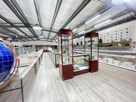 We operate a 1,000-square-metre mineral and jewellery showroom in Melton, Victoria, Australia. The gallery showcases rare mineral specimens and collectible pieces from around the globe—more than 500 categories in total.